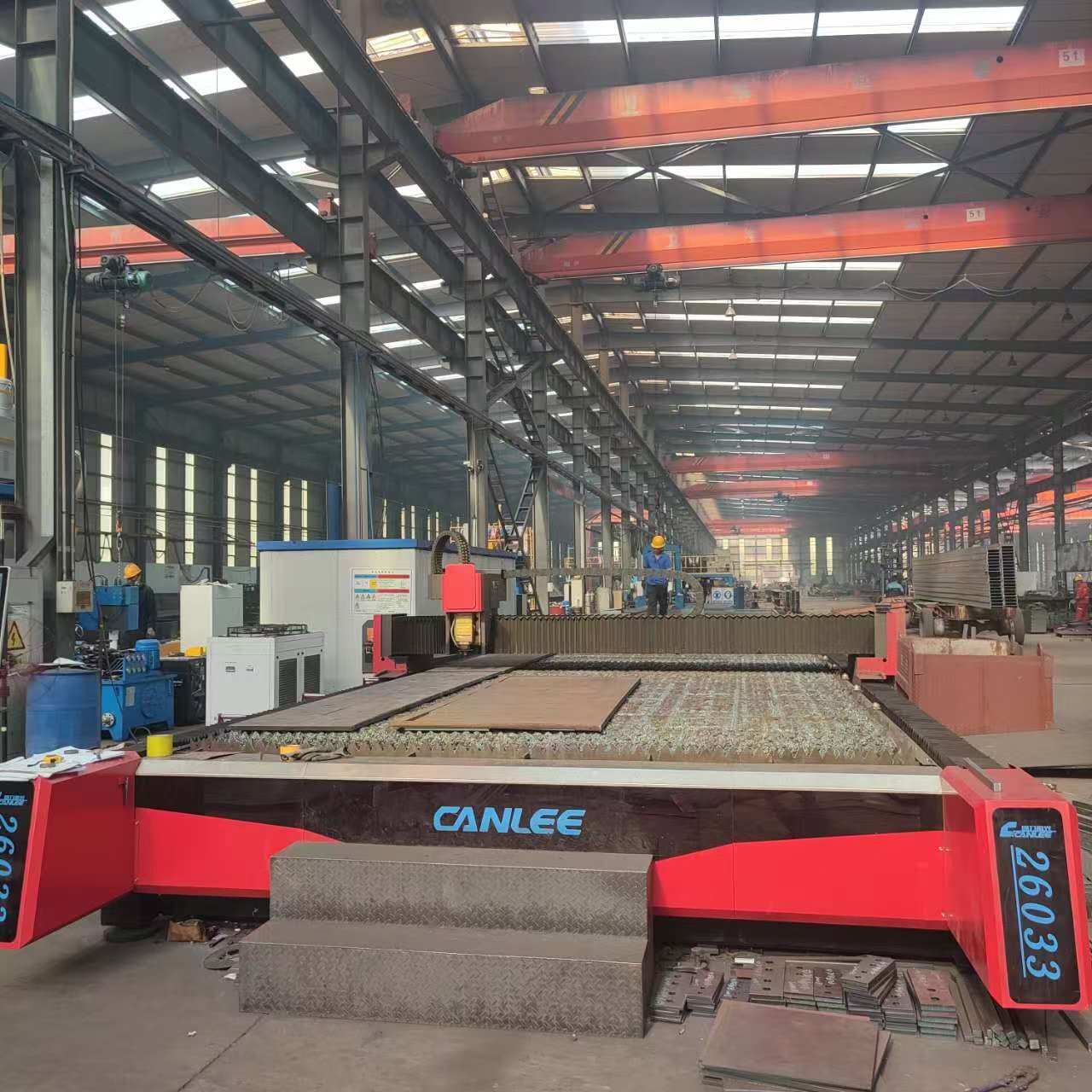 配有德國(guó)卡巴赫高速鋸床、三維鉆、鉆鋸一體生產(chǎn)線,德國(guó)KISTLER組、焊、矯一體機(jī),大幅面激光切割機(jī)、數(shù)控火焰切割機(jī)、等離子切割機(jī)、組立機(jī)、龍門式埋弧焊機(jī)、矯正機(jī)、全自動(dòng)6米折彎?rùn)C(jī)、剪板機(jī)、搖臂鉆、數(shù)控相貫線切割機(jī)、型材切割機(jī)、電渣焊機(jī)、拋丸機(jī)等設(shè)備構(gòu)成的鋼結(jié)構(gòu)件生產(chǎn)線,并配有其它全自動(dòng)數(shù)字化數(shù)控鉆床,以及焊機(jī)、起重設(shè)備等配套輔助設(shè)備,C型鋼成型設(shè)備數(shù)臺(tái),鋼構(gòu)件加工年生產(chǎn)能力3萬(wàn)噸。