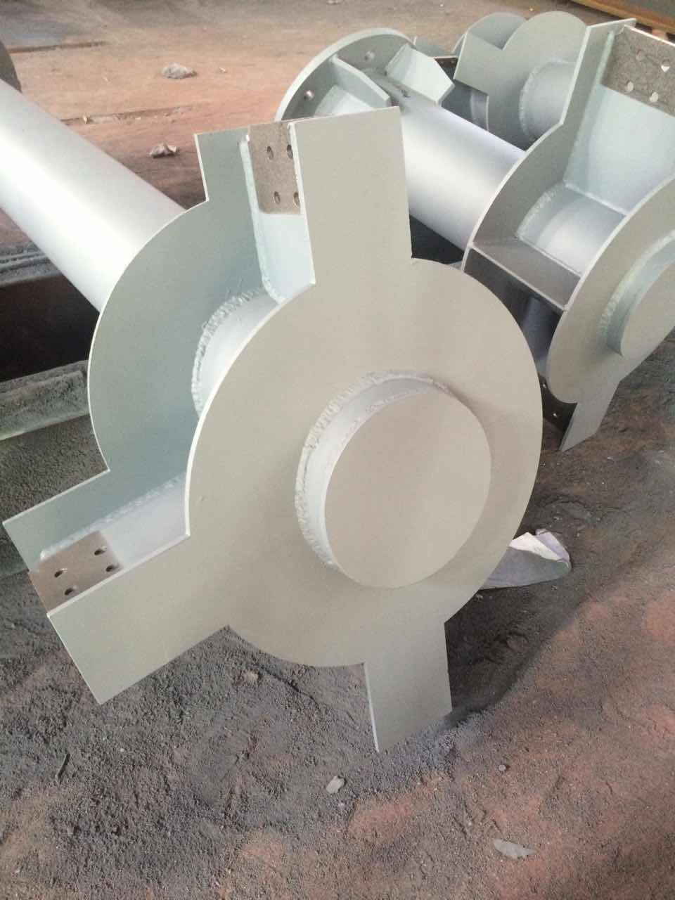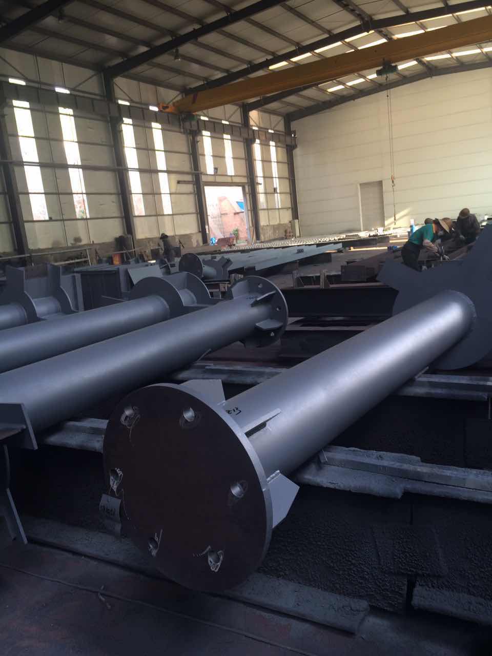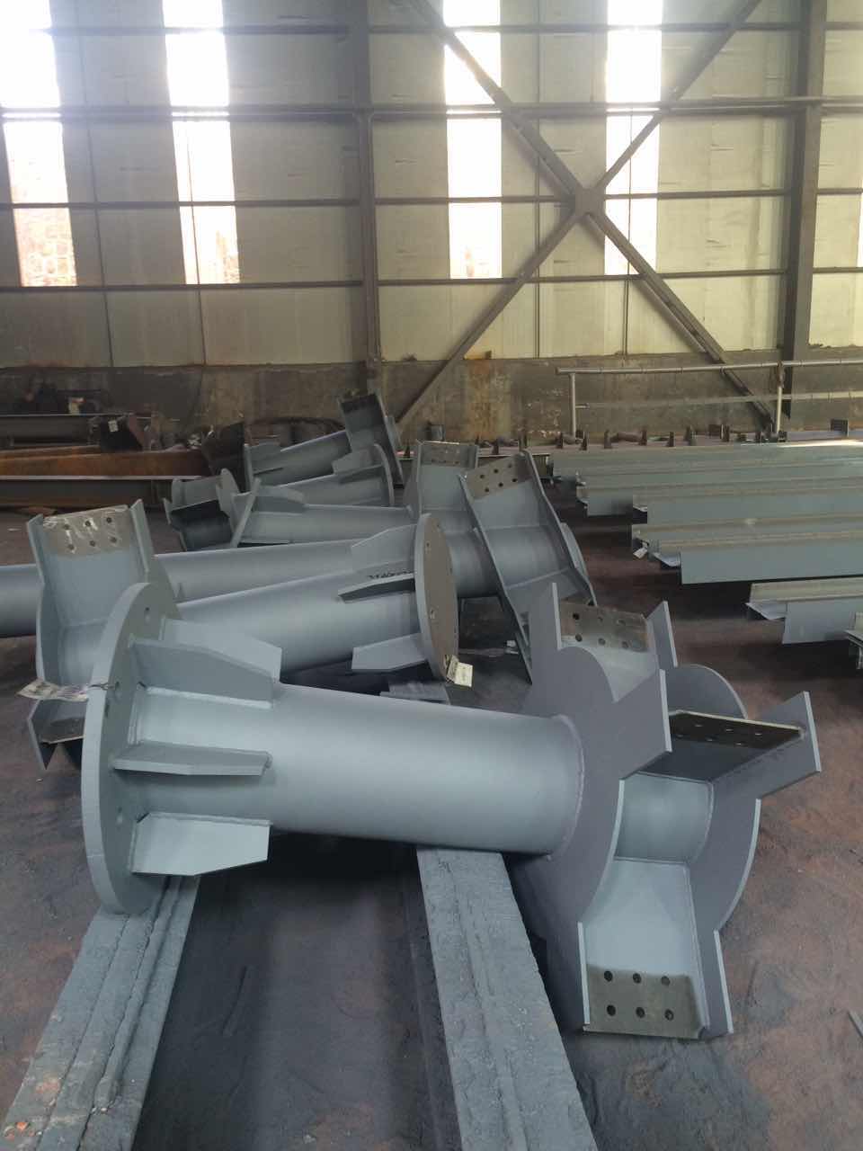 9月份我公司承接了內蒙古博物館項目的鋼結構制作工程,博物館圓管柱制作難度大,四向牛腿雙向角度,上下相貫口,柱腳板與圓管不在同一圓心,柱腳安裝孔無規(guī)則,裝配難度大。